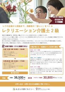 実務者研修で学びきれなかった介護技術をトランス講習で、生活の中にレクリエーションを組み込んで心身の維持向上に努めるレクリエーション介護士2級講座
